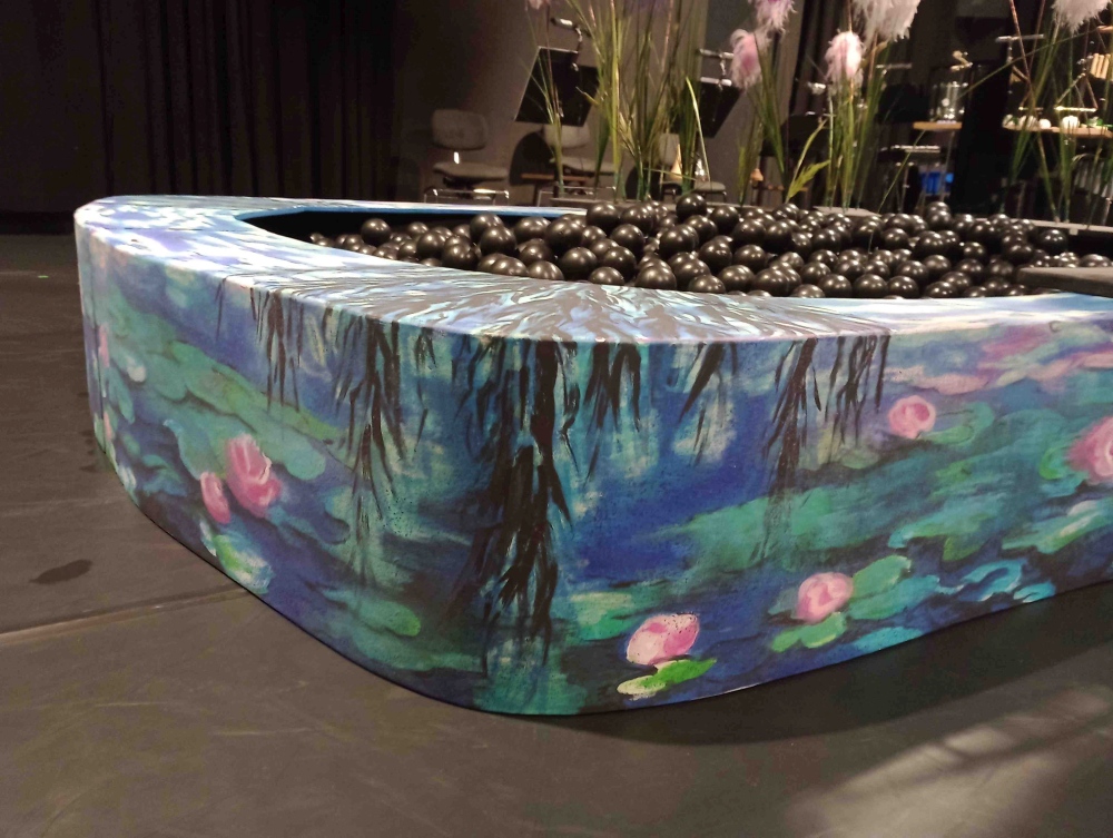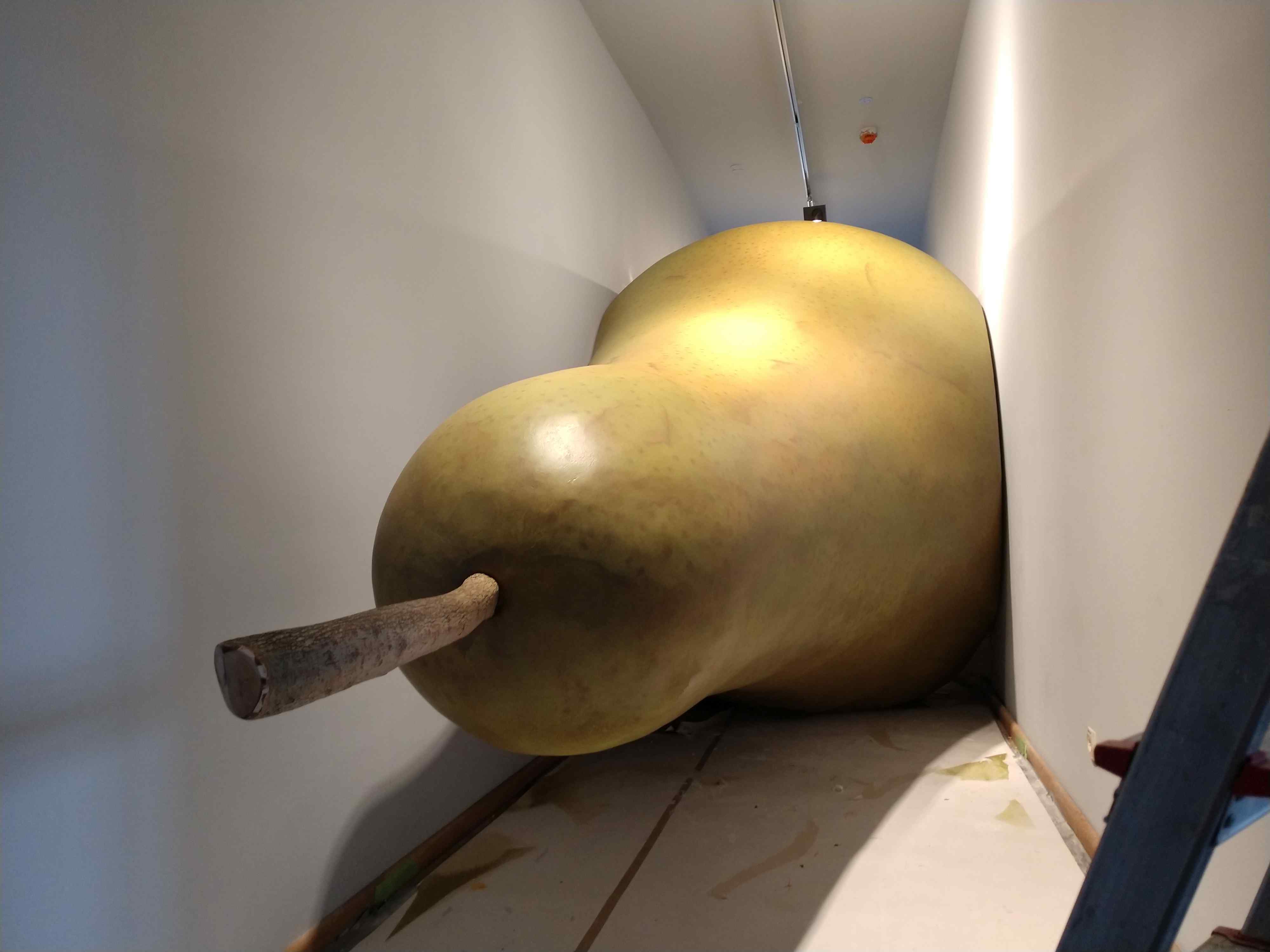 Dazu gehört als besonderes Highliht eine begehbare Birne vom Typ "Gute Luise". Entstehen sollte der Eindruck einer übergroßen Birne, welche eingezwängt im Raum dennoch natürlich wirkt.
