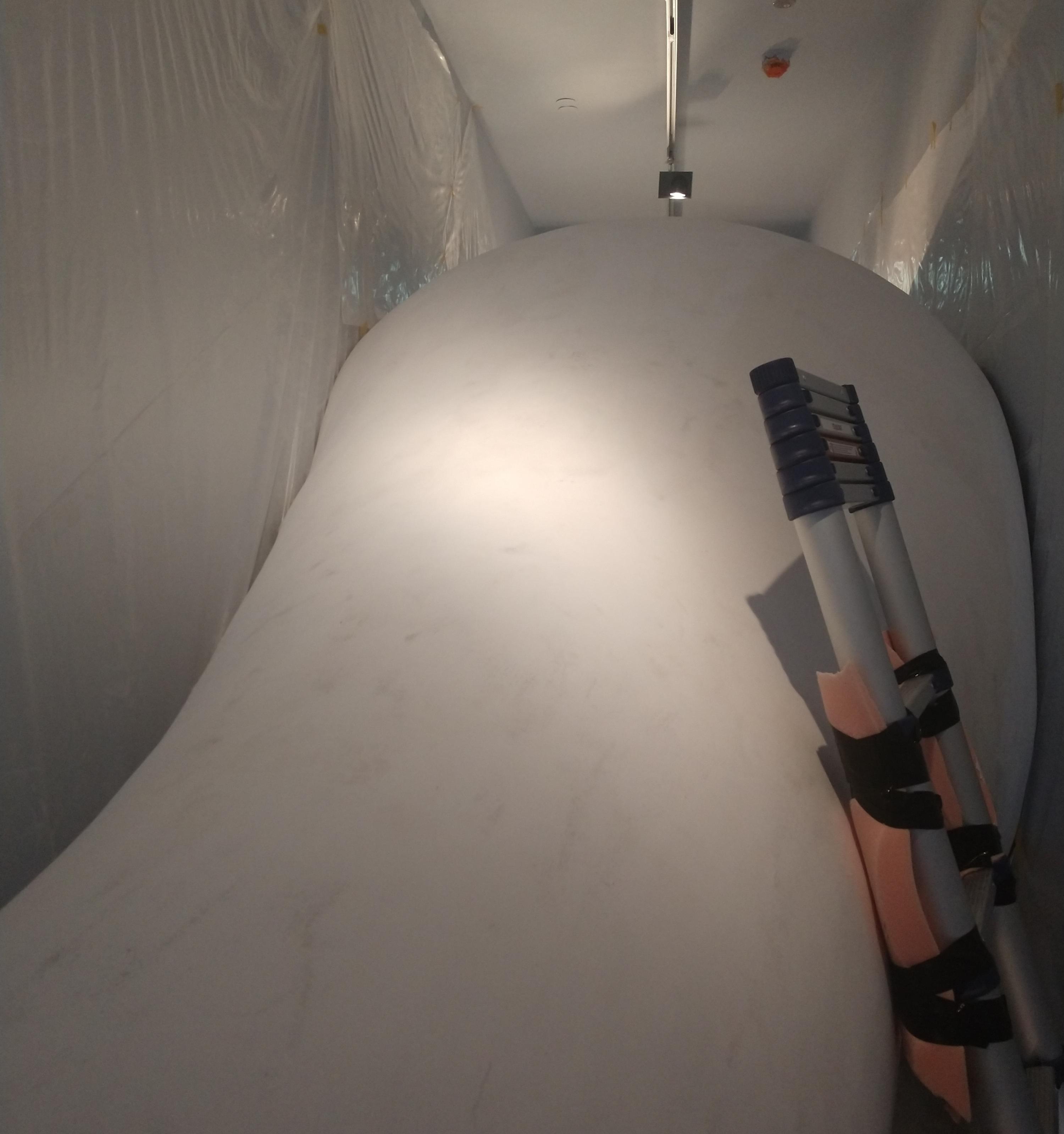 Um Verschmutzung zu vermeiden, wurde zunächst Boden und umgebende Wände sowie die inneren Bereiche der Birne abgeglebt.